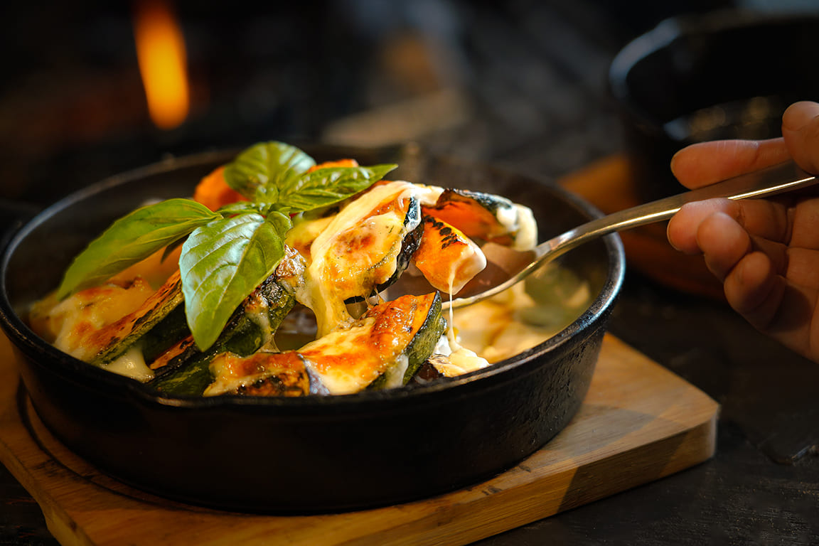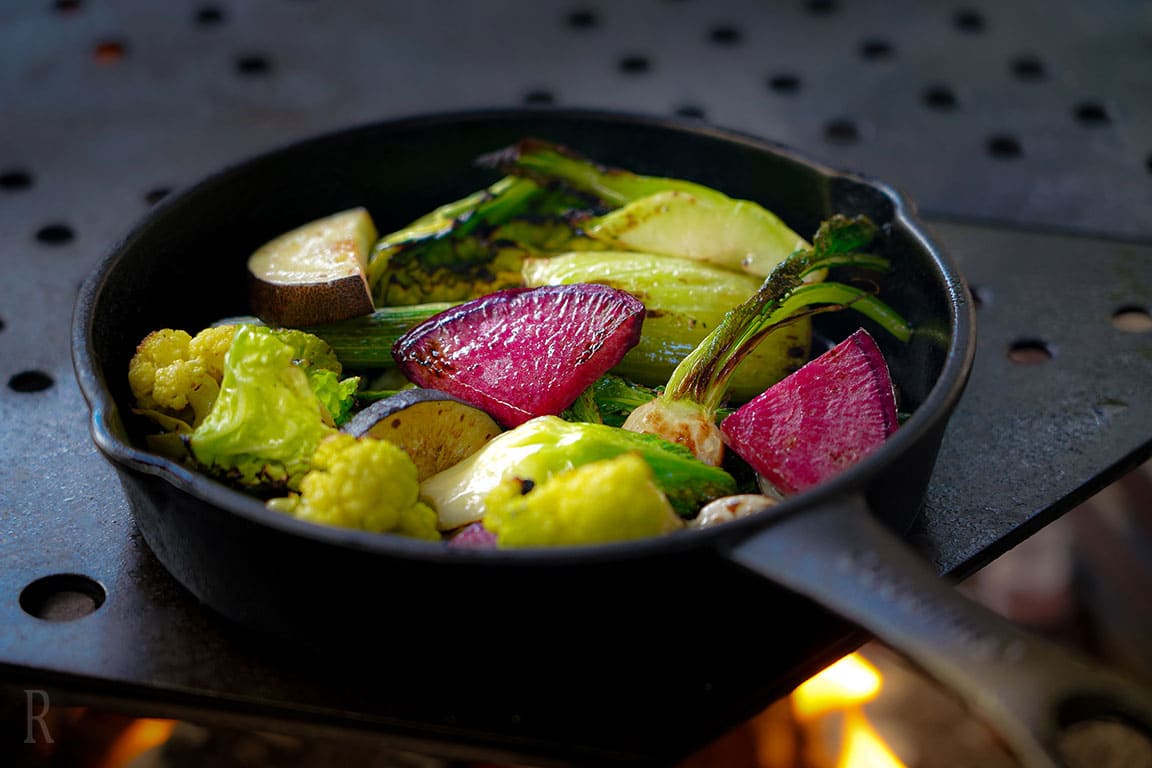夏を感じさせるこの一皿には、三島から直送された色鮮やかな旬野菜をスキレットで香ばしく仕上げ、素材の旨みを余すことなく引き出しました。