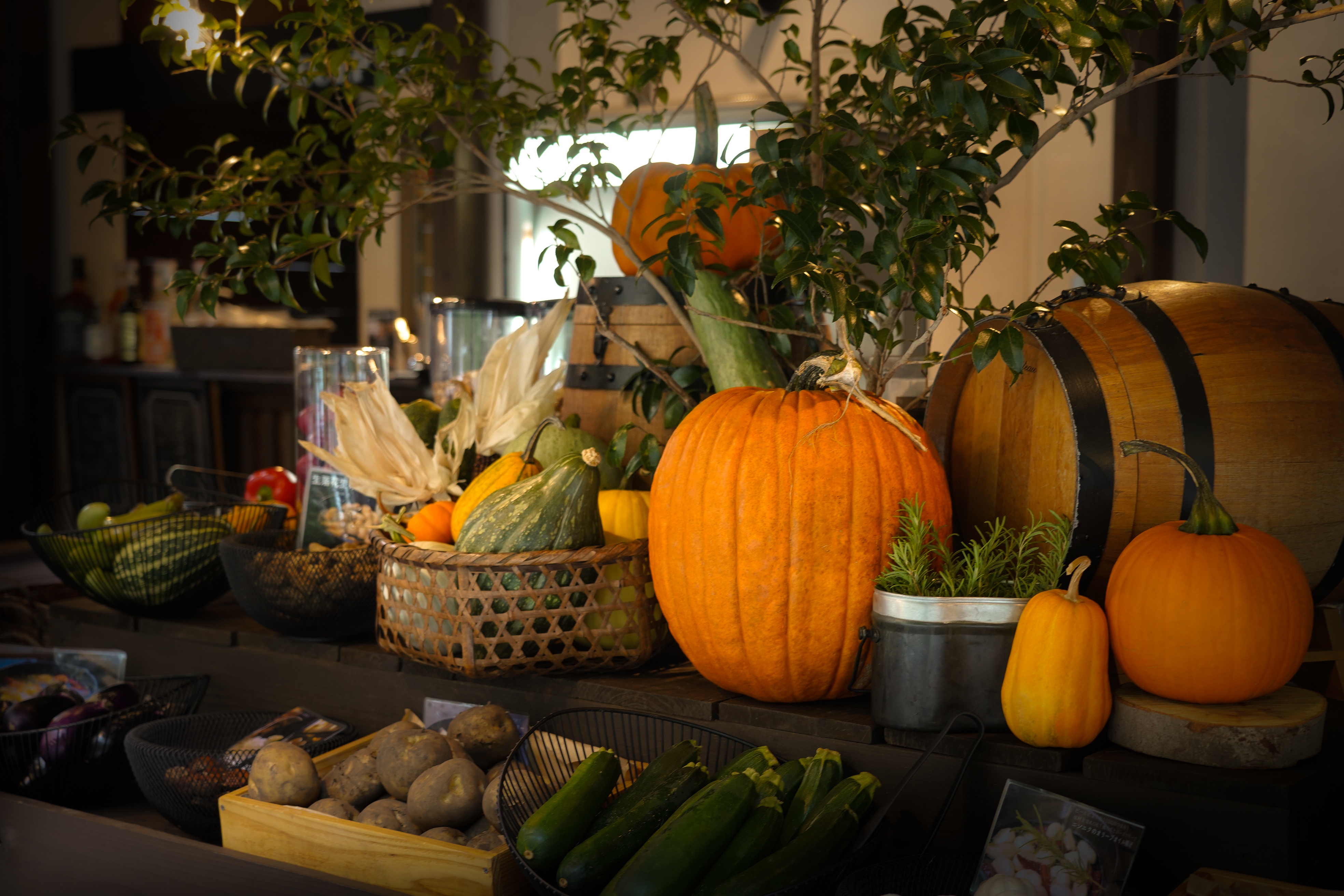 実りの秋にふさわしく、地元湯河原の新鮮な食材が並ぶ「マルシェの秋」。ほくほくとした甘みが体を温める栗やさつまいも、